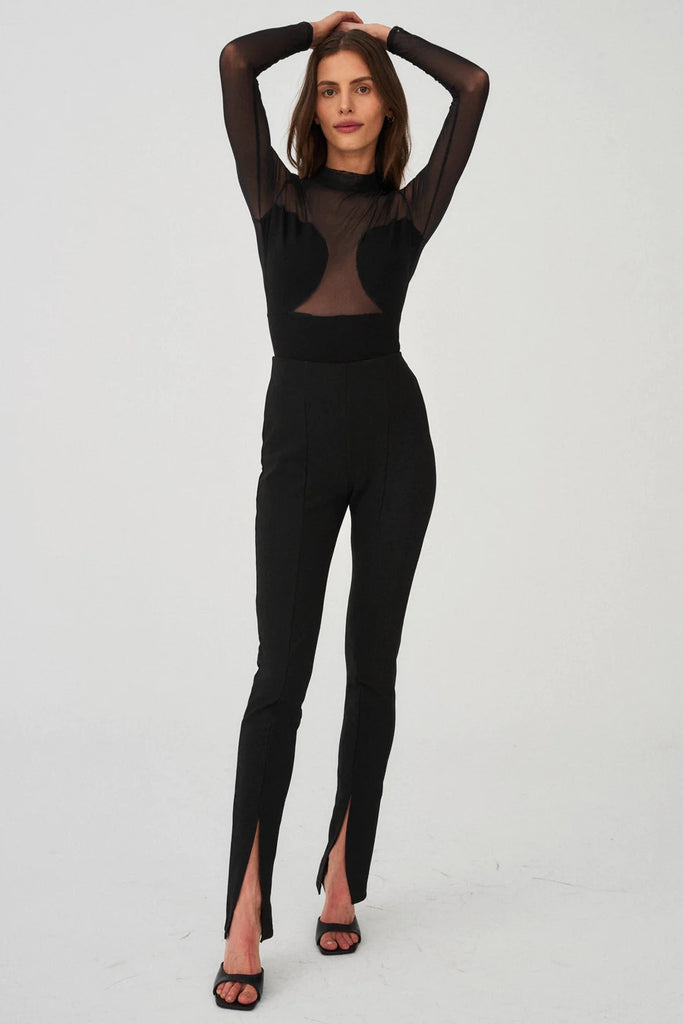 - Body aus kombinierten Stoffen mit niedrigem Rollkragen.