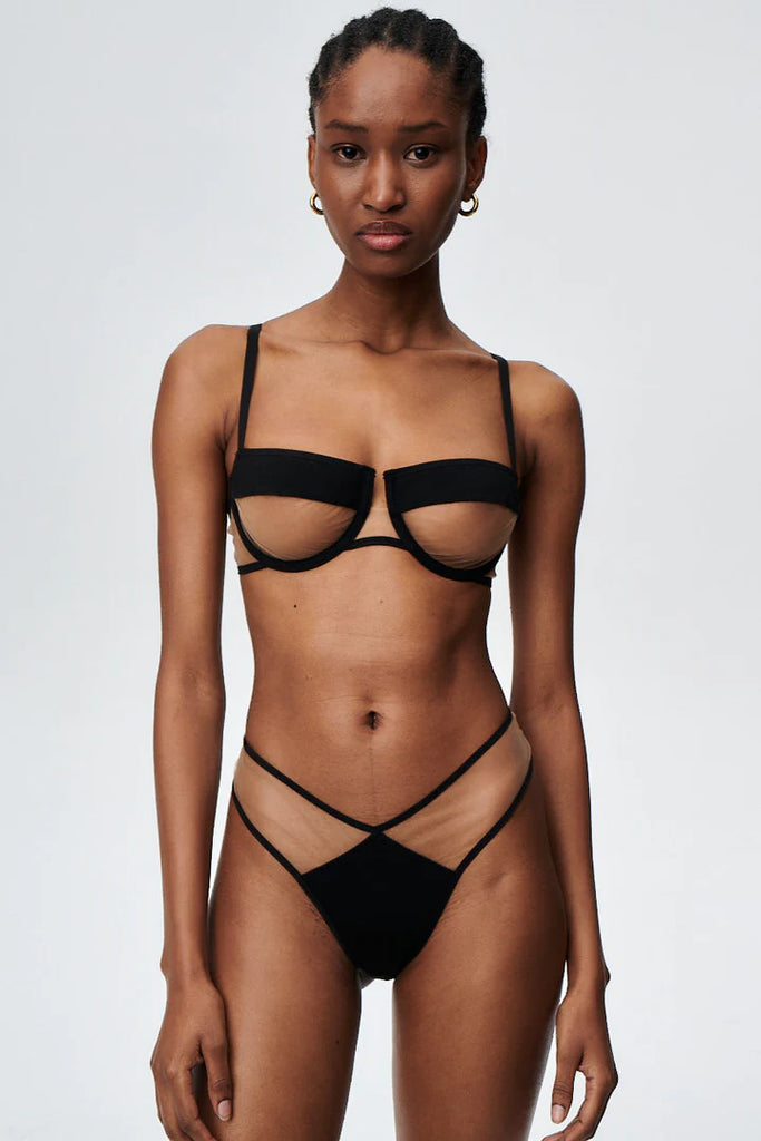 Undress Codes bekannte Mischung aus Viskose und Mesh - jetzt in einer neuen, supersexy Version. Durch das eng anliegende Mesh wirkt der Deja Vu Tanga besonders verführerisch, bleibt dabei aber bequem und dehnbar.