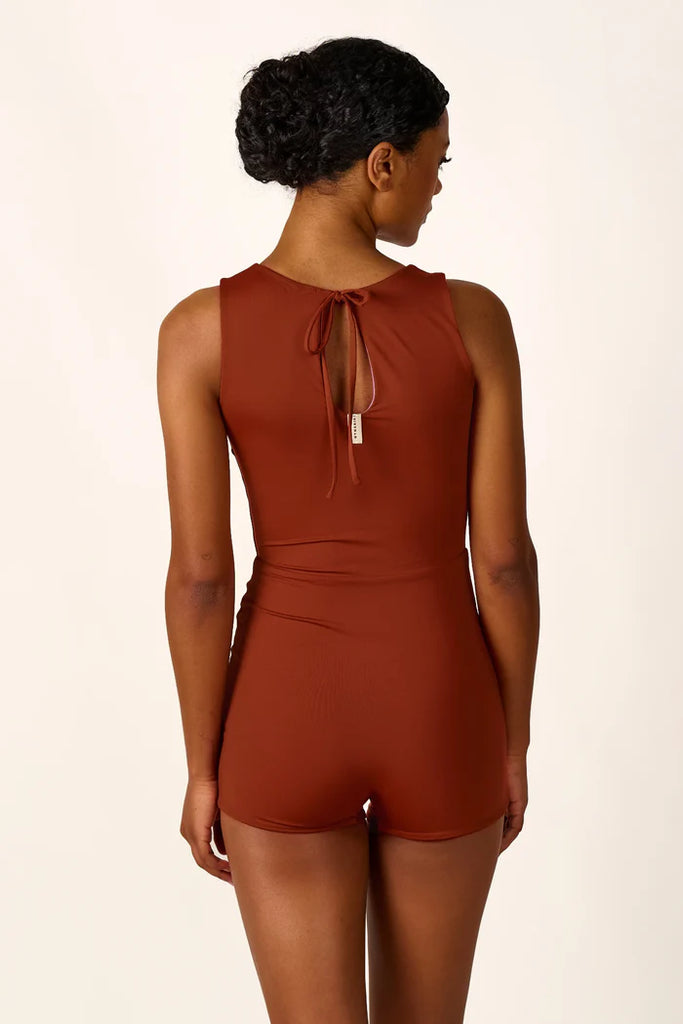 SHORTIE ist der erste Badeanzug mit angeschnittenem Bein und vereint den Komfort einer Shorts mit dem sicheren Halt eines Badeanzugs. Die verlängerten Beine reichen über die Hüfte und bieten zusätzlichen Schutz für die Haut – ideal zum Schwimmen, Surfen oder Sonnenbaden. Die farbliche Unterteilung in der Taille kreiert einen eleganten Zwei-Teiler-Look, während das sportlich geschnittene Oberteil mit breiten Trägern und einem runden, hohen Ausschnitt überzeugt. Zusätzlich anpassbar dank des Bands im Nacken.