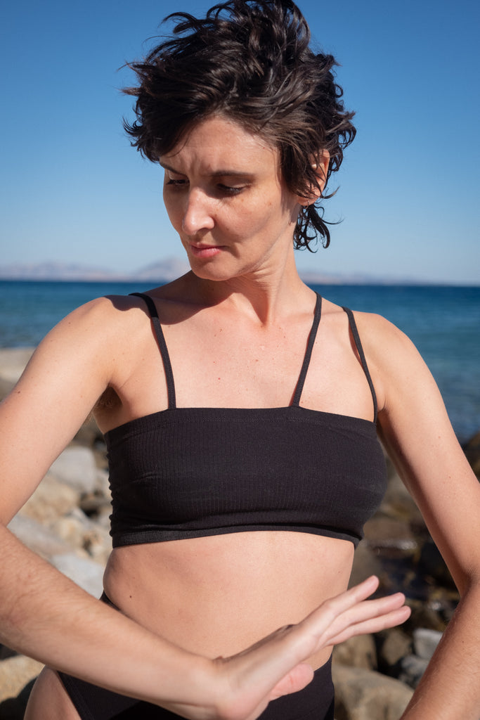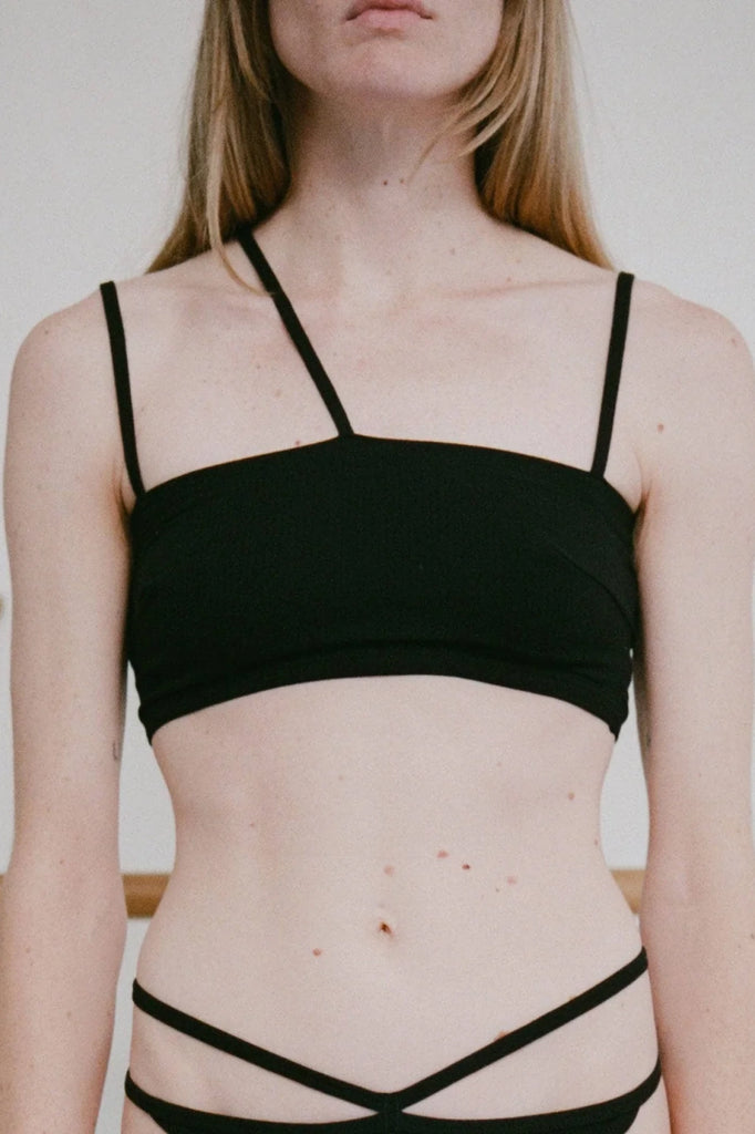 Baserange | Nida Bra, Cotton Rib Bralette (Black)