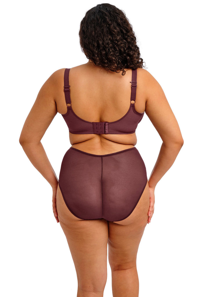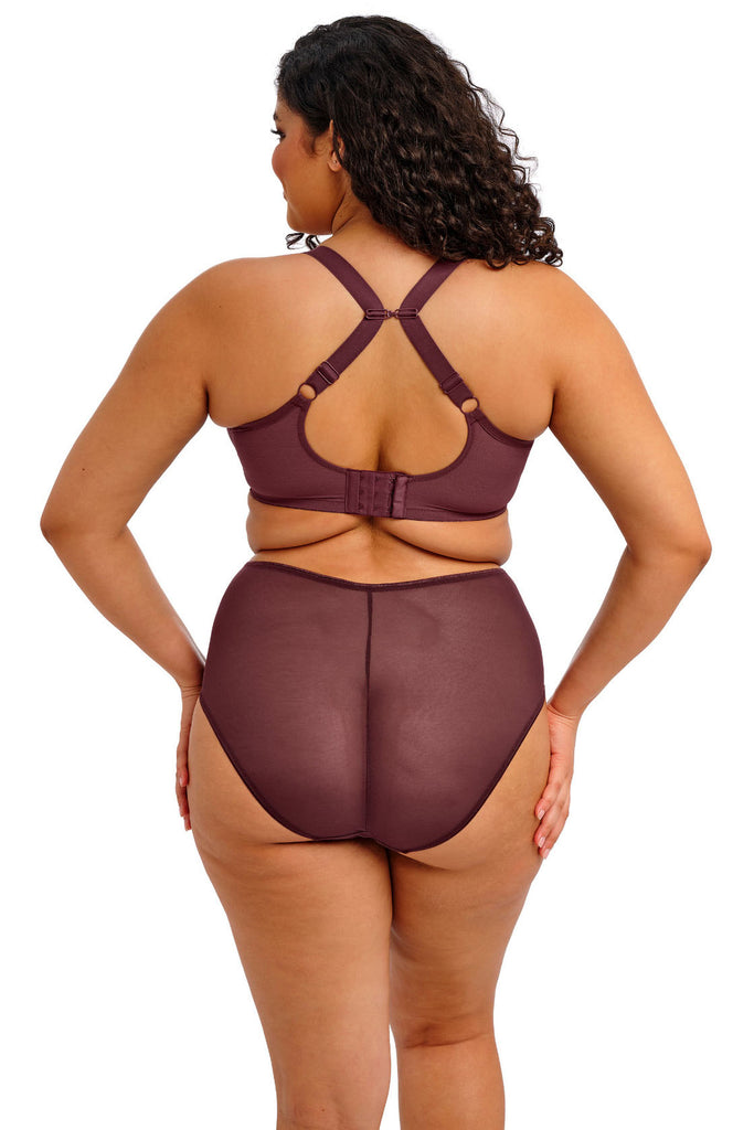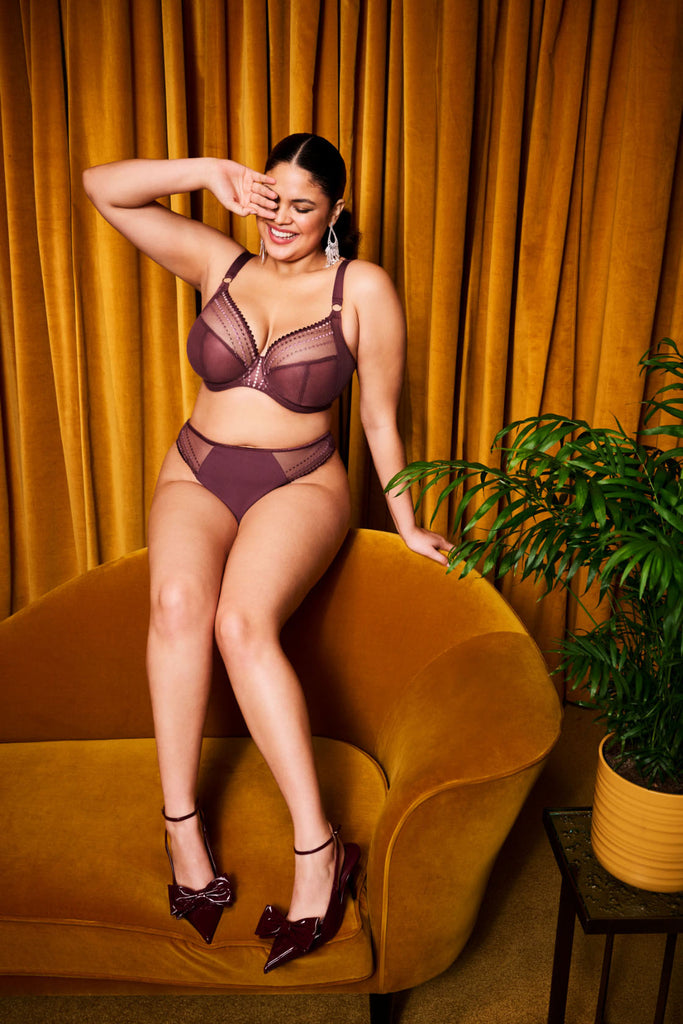 Entdecke Elomis beliebten Matilda Plunge-BH in Iris mit dreiteiligen Cups und seitlichen Stützeinsätzen für eine nach vorne gerichtete Form und Hebung. Mit seiner klassischen Stickerei auf den Oberschalen in einem kräftigen lila Farbton.