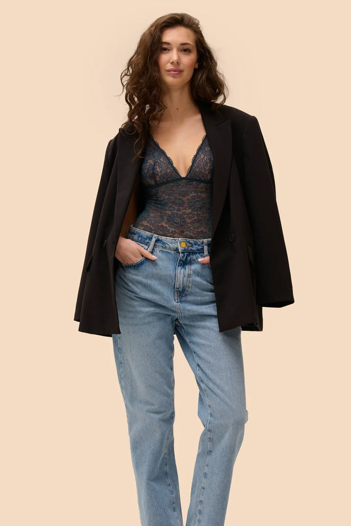 Ganz aus Spitze gefertigter, bügelloser Body.