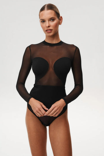 - Body aus kombinierten Stoffen mit niedrigem Rollkragen.