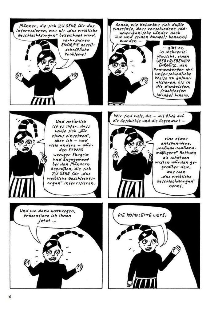 In Der Ursprung der Welt zeichnet die Autorin Liv Strömquist die Kulturgeschichte der Vulva nach – von der Bibel bis Freud, vom unbeholfenen Biologieunterricht bis hin zur aktuellen Tamponwerbung. Sie bedient sich des Mediums Comic, um in sieben Episoden auf nonchalante und scharfsinnige Art die noch immer geltenden patriarchalen Machtverhältnisse in Frage zu stellen und bestehende Probleme pointiert zu benennen.