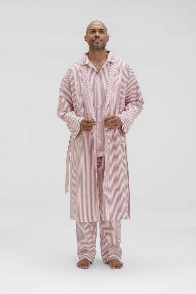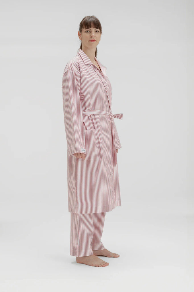 Dieser Unisex Morgenmantel eignet sich als perfekter Begleiter im Bad, als stilvolle Ergänzung über der Nachtwäsche oder kombiniert im Alltag. Hergestellt aus garngefärbtem Biobaumwoll-Mix für einen entspannten Look, bietet er ultimativen Komfort für die entspannte Jahreszeit. Locker geschnitten mit weiten, langen Ärmeln, leicht überschnittenen Schultern und zwei aufgesetzten Taschen. Der Bindegürtel aus dem gleichen Material sorgt für eine individuelle Passform. Dezentes avonté - Loop im Nacken und Signature Logo am Ärmelsaum.
