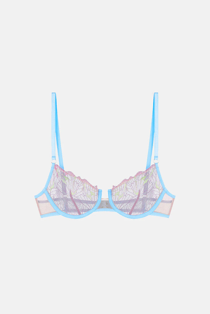 Der Echo Butterfly Embroidery Underwire Bra verfügt über ein maßgeschneidertes Schmetterlingsflügel-Stickmuster und einen Rücken aus Stretch-Tüll. Die ungefütterten Cups im Balconette-Stil passen sich Ihrer Form an, ohne dabei an Halt einzubüßen, und sorgen den ganzen Tag über für Tragekomfort.