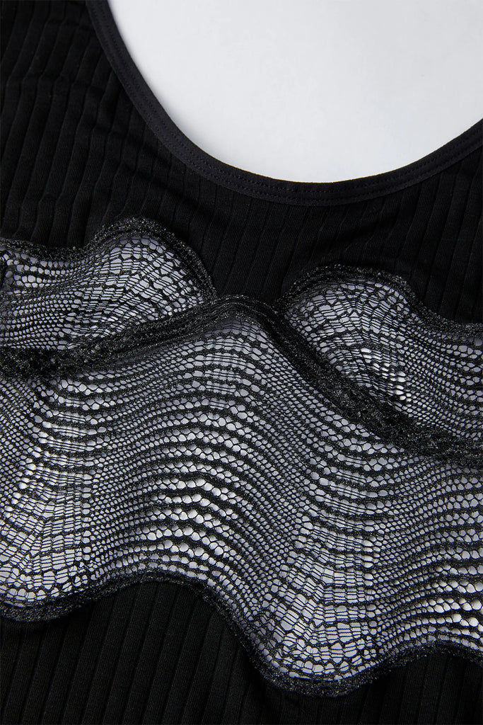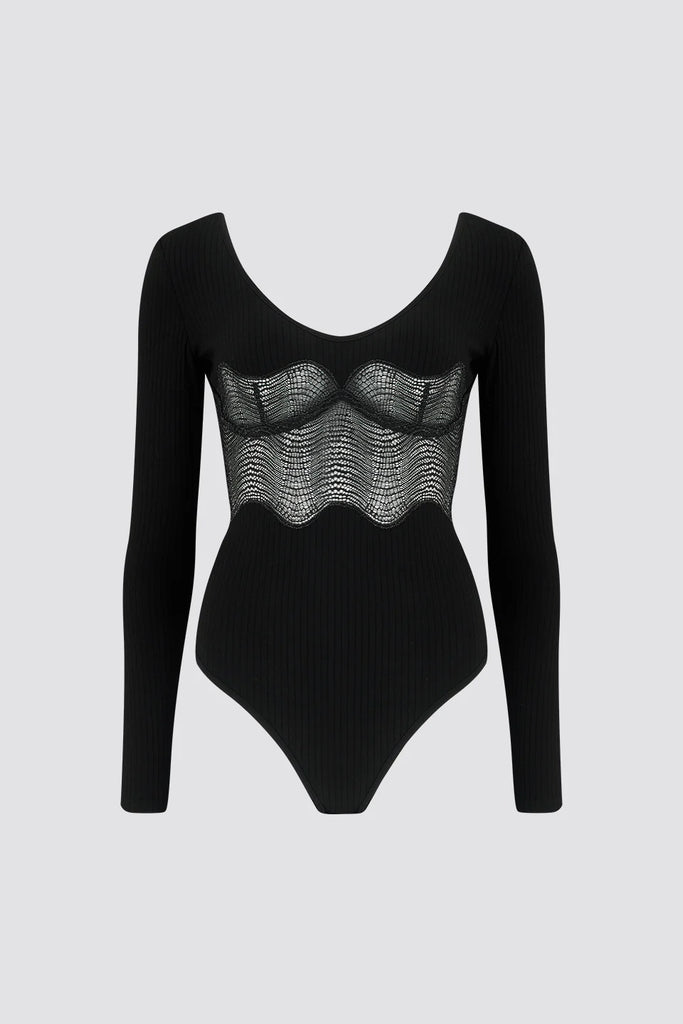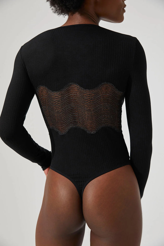 Opaak | Ease, Zena Rip Lace Sleeved Bodysuit (Black)