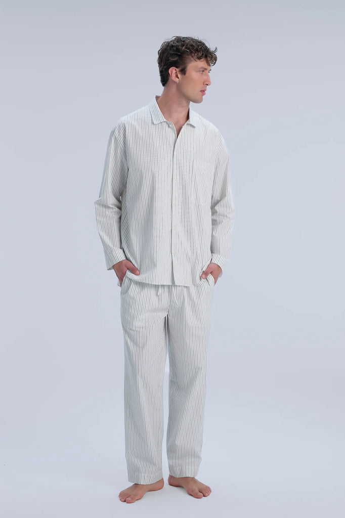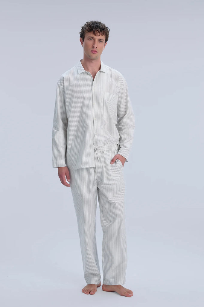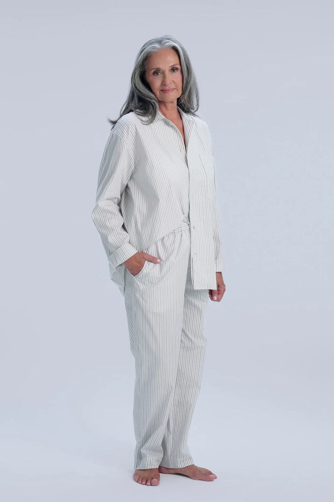 Avonté | Pyjama Hose (Olive Cream Pinstripe)