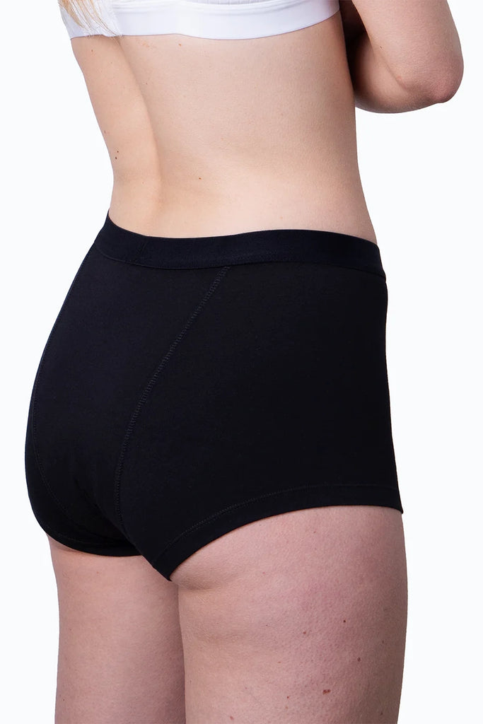Diese Boxershorts eignen sich auch, um vaginalen Ausfluss, kleine Blasenentleerungen und Blutungen in der Schwangerschaft und im Wochenbett aufzusaugen.
