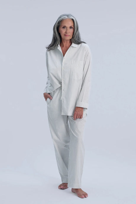 Avonté | Pyjama Shirt (Olive Cream Pinstripe)