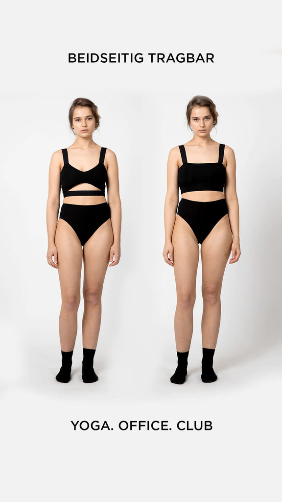 Während du im überfüllten Yoga Studio schwitzend nach deiner inneren Mitte suchst oder die vom Youtube-Channel erlernten Dancemoves im Club zur Schau stellst. Das Black Cloud Top lässt dich vor Begeisterung aus allen Wolken fallen. Grafische Cutouts lassen das Diskolicht auf deiner Haut glitzern und das atmungsaktive Material sorgt dafür, dass du nicht hyperventilierst. Findest du die Cut-Out Version für den Kindergeburtstag der Tochter deiner besten Freundin unangebracht, dreh das Top einfach um. It's a wrap!