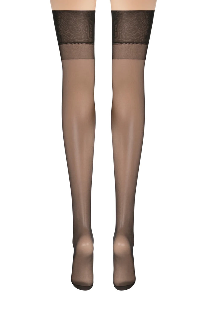 Strumpfband in blickdichten Schleier, Bein in 10 Den.