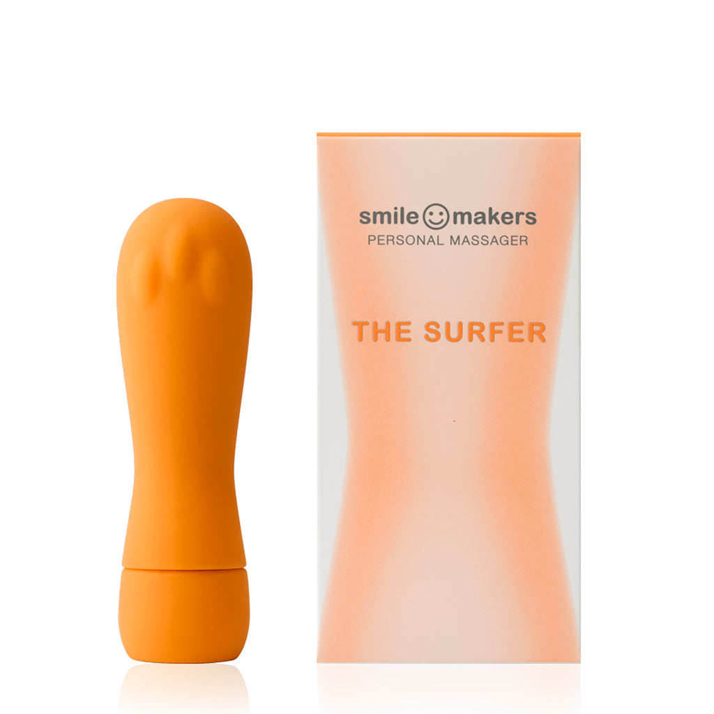 Surfer ist der kleinste Vibrator aus der Familie der Smile Makers und ist kaum größer als ein Finger. Seine Form mit drei subtilen Noppen stimuliert die Klitoris auf eine sanfte und spielerische Weise und beweist, dass es manchmal die kleinen Dinge sind, die den großen Unterschied ausmachen können!