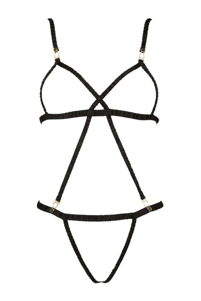 Harness made of pretty pleated satin band, the band games will highlight your curves.