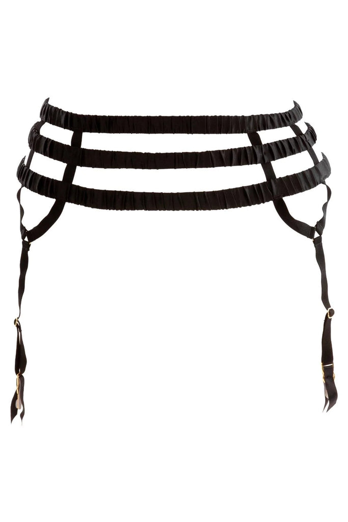 The Please Me suspender belt has 3 bands of black pleated satin, with a terribly sensual soft bondage spirit.