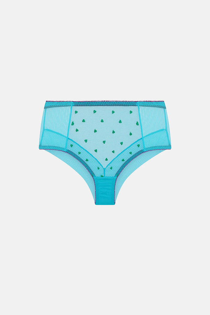 Die Nelle High Waist Knicker zeigt ein maßgeschneidertes Herzmotiv auf durchsichtigem Tüll. Der VPL-freie Stretch-Tüll auf der Rückseite sorgt für eine schmeichelhafte und bequeme Passform.