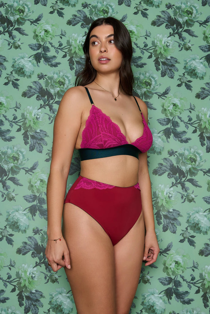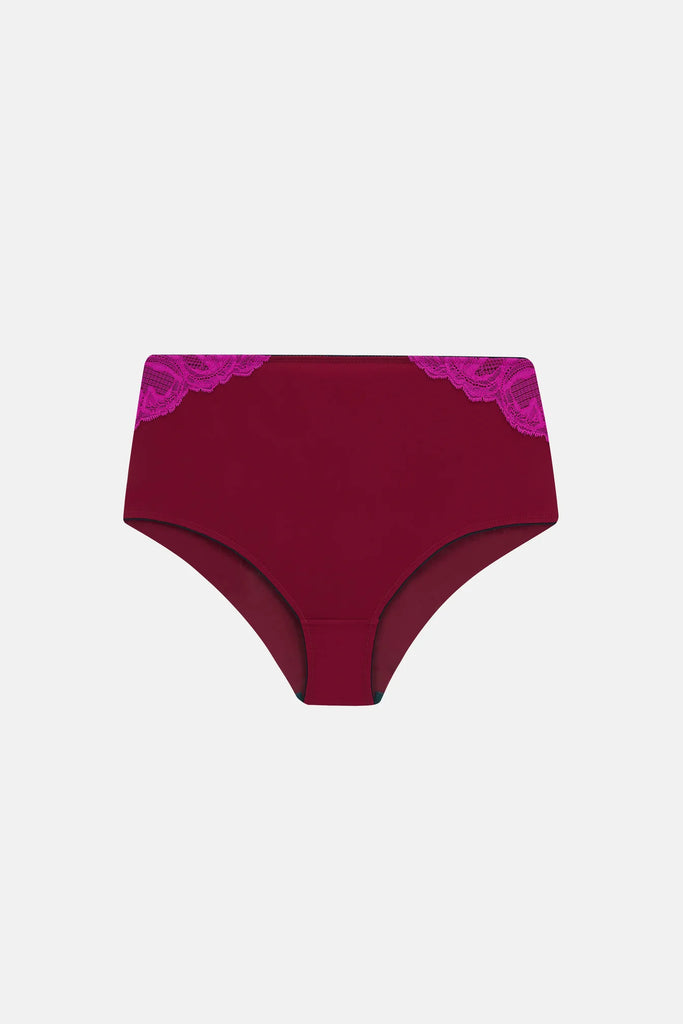 Der Tulasi High Waist Knicker besteht aus weicher Stretch-Mikrofaser mit zarten Spitzendetails. Er ist ebenso bequem wie farbenfroh.