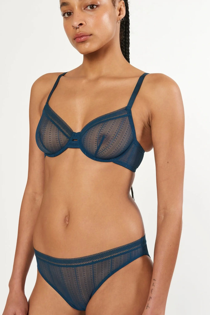 Sleek, sophisticated, and semi-sheer, this artisan lace–trimmed collection is a versatile staple. And in its cool new hue, it’s as statement-making as it is stylish.