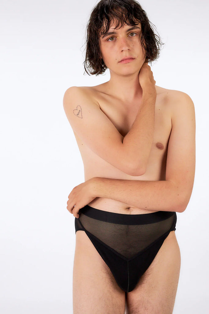 sheer and cheerful. high waist. elongated leg due to the angular design on the side, slowly becoming an exposé in the back. it's the boldness of things. it's the softest of touch. cotton lined for comfort.