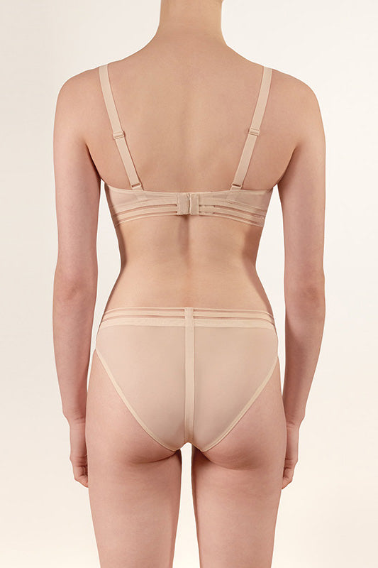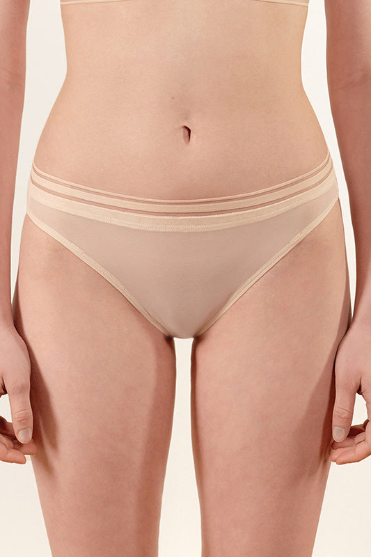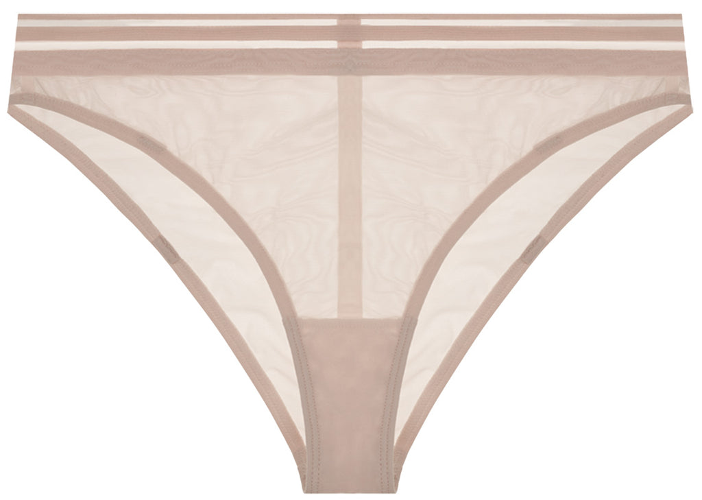 Our classic brief in all sheer Bleached Sand. The soft powermesh is body-hugging and finished with a wide effect elastic waistband. With a regular rise fit, this style is complimenting your sensuality with contemporary detailing.