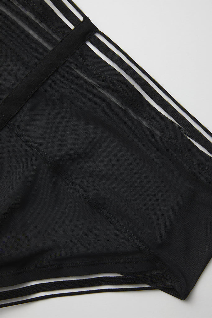 Body-hugging and shaping high-waist brief in all sheer Volcano Black. The soft powermesh is perfect for layering. Paloma is finished with a non-digging wide effect elastic on waist and around the back. With a comfortable cut, it is complimenting your sensuality with contemporary detailing. This style can be completed with matching leg straps Shelly.