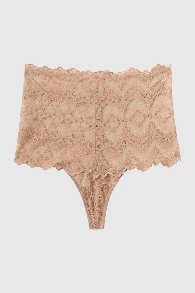 Understatement | Lace, Highwaist Tanga (Warm Beige)