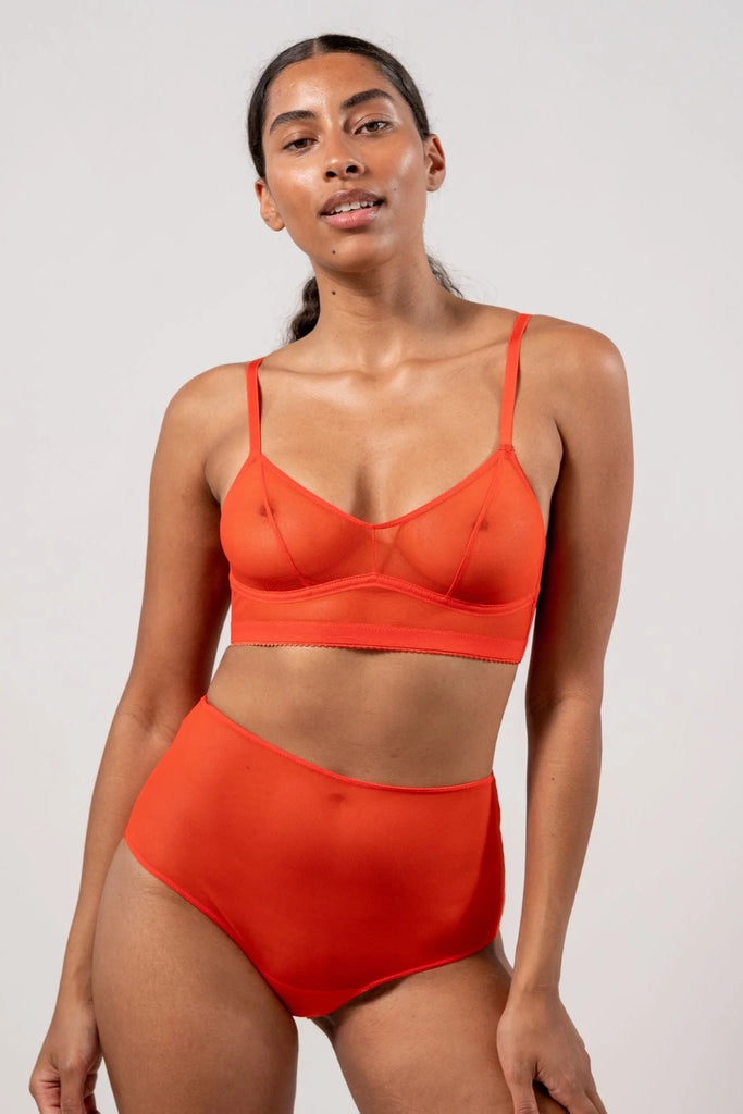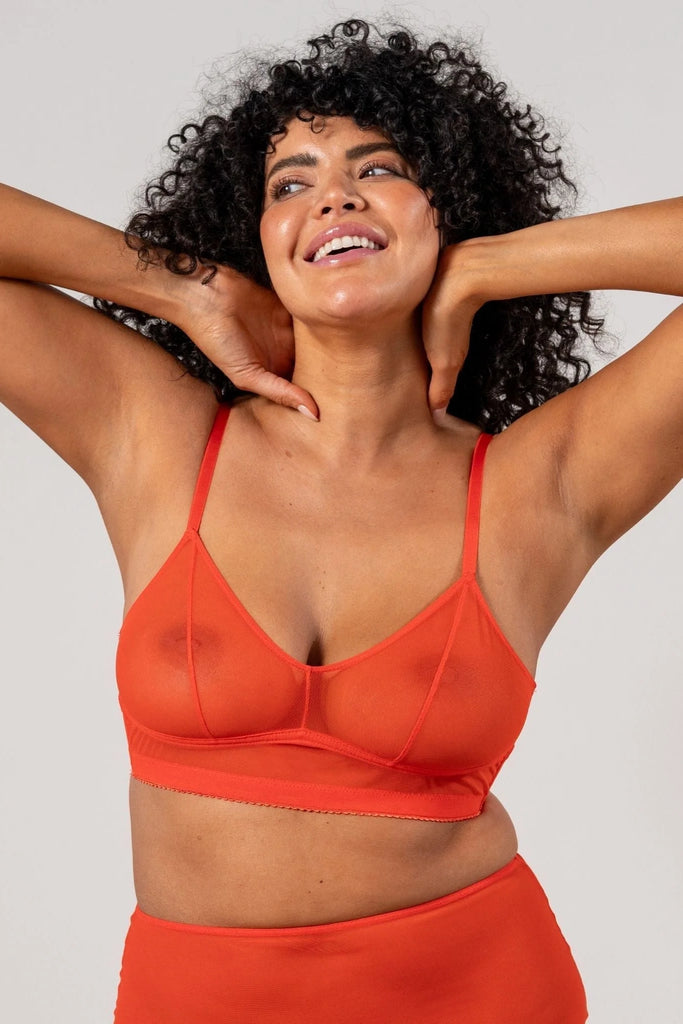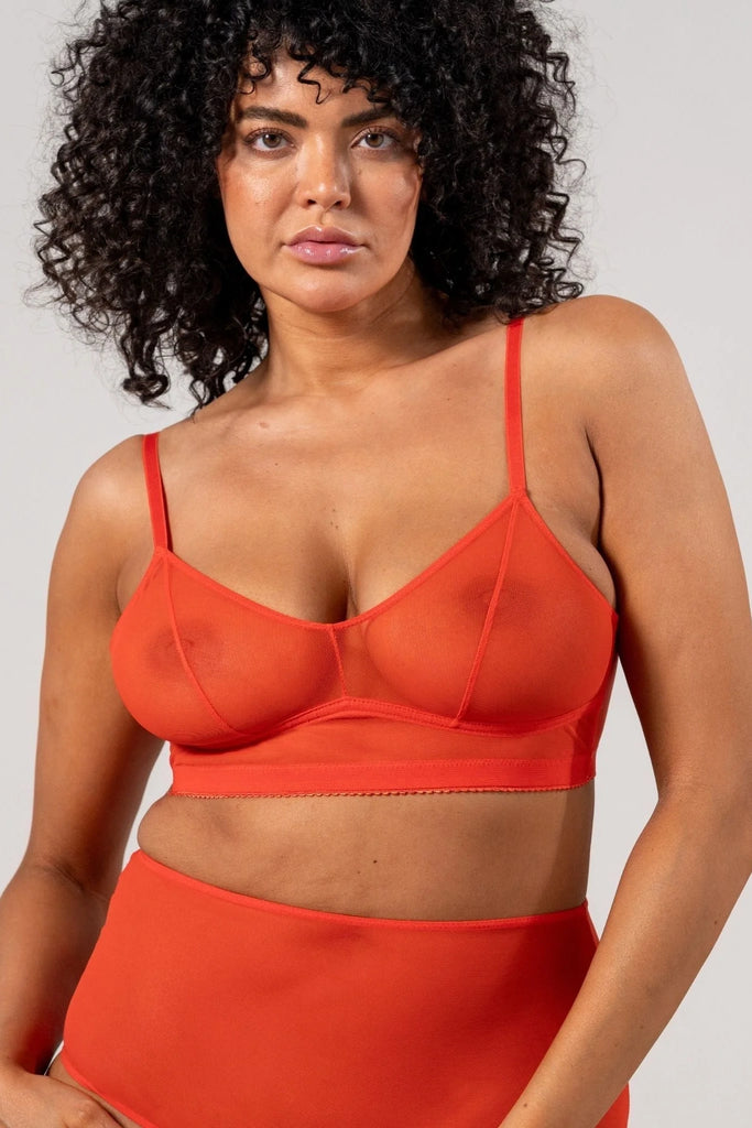Understatement | Mesh Balconnette, Soft Bralette (Fiery Red)